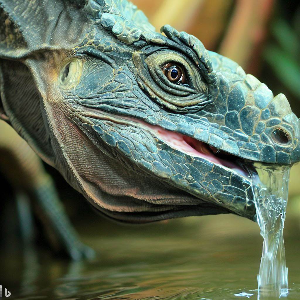 2. 食性: イグアノドンは主に植物食で、主に木の葉や樹木の枝、草などを食べていたと考えられています。そのくちばしと歯は、植物の組織を咀嚼するのに適していたとされています。イグアノドンは非常に頑強な顎と歯を持っており、植物の硬い部分を噛み砕くことができました。